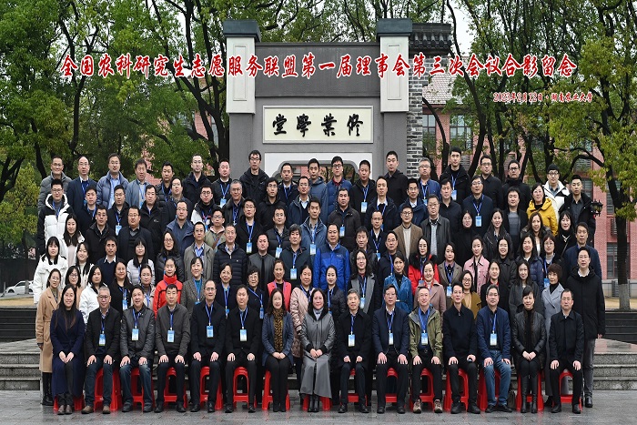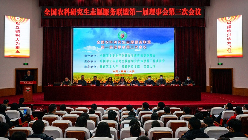 2月12日,由中国学位与研究生教育学会农林学科工作委员会主办,湖南农业大学、乐鱼平台_乐鱼(中国)一站式服务平台和吉首大学联合承办的全国农科研究生志愿服务联盟(以下简称“联盟”)第一届理事会第三次会议在湖南农业大学修业讲堂召开。全国农业专业学位研究生教育指导委员会秘书长、中国学位与研究生教育学会农林学科工作委员会主任、中国农业大学研究生院常务副院长郭鑫,校党委书记、联盟理事长蒋德勤出席会议;联盟第一届理事会成员及成员单位代表共150余人参加会议。乐鱼平台_乐鱼(中国)一站式服务平台党委委员、副校长、联盟秘书长李升和,研究生处处长张春雨、副处长靳二辉参加会议。