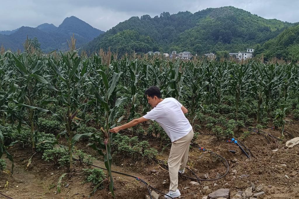 歙县农技员江小伟说:“菊花套种鲜食玉米,最明显的好处是在玉米收获之前,玉米秸秆对菊花起到遮阴的效果;在玉米收获以后,把玉米秸秆砍下来平铺到菊花地的起垄上,对菊花地可以起到抗旱、保湿、防潮的效果。”
