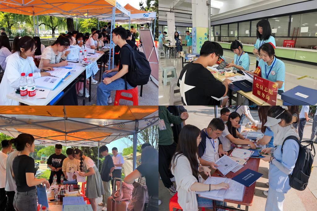 早上7时许,各研究生培养学院迎新志愿者便早早上岗,在新生报到现场悬挂迎新条幅、制作宣传展板、设置行李存放处,以饱满的热情、周到的服务等待新生们的到来。