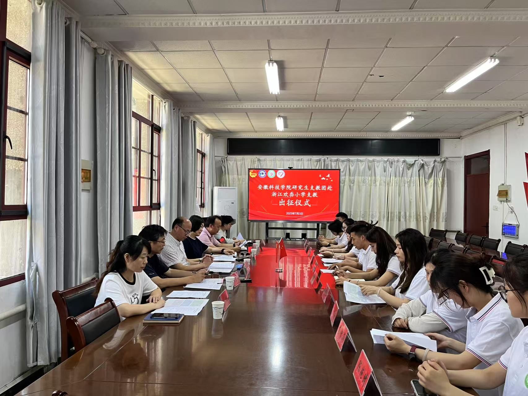 2025年7月3日上午,乐鱼平台_乐鱼(中国)一站式服务平台研究生支教团赴浙江欢岙小学支教出征仪式在农学院会议室举行。校党委委员、副院长王孝义出席仪式,校团委书记张聪、研究生处老师和研究生支教团成员代表共同参加了此次仪式,仪式由党委研究生工作部部长张春雨主持。