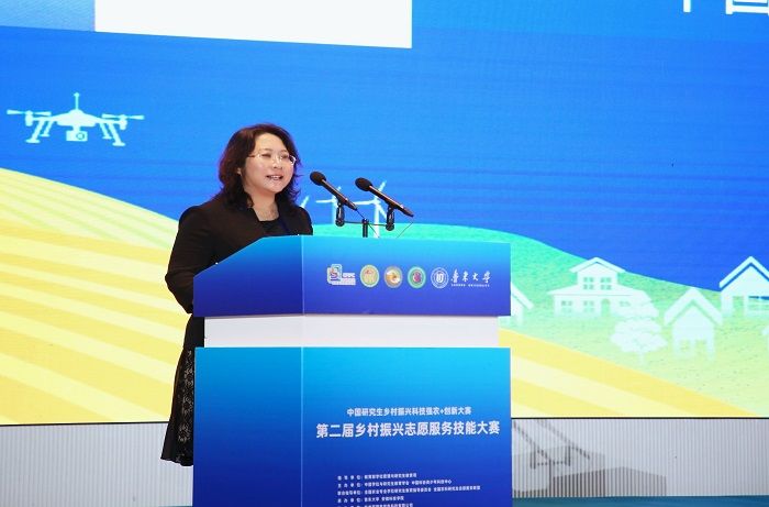 开幕式上赵瑜致辞,她强调,今年是习近平总书记对研究生教育工作作出重要指示五周年,也是《教育强国建设规划纲要(2024-2035 年)》贯彻落实开局之年,纲要明确提出“完善拔尖创新人才发现和培养机制”。研究生教育作为高水平拔尖创新人才培养的主渠道,在支撑高水平科技自立自强、高水平人才自主培养,建设世界重要人才中心和创新高地中发挥关键作用。他指出,志愿服务是中国式现代化建设与乡村振兴的重要力量,去年印发的《关于健全新时代志愿服务体系的意见》充分体现了党中央对志愿服务事业的高度重视。乡村振兴志愿服务技能大赛作为科技强农+创新大赛的重要组成,引导研究生关注“三农”、涵养家国情怀,用专业所长助力 “新农村、新农业、新农民、新生态” 建设。本届大赛规模实现翻番,同比增长超 160%,充分彰显了研究生将农业农村需求与科研理论结合、投身乡村振兴的热情与成果。