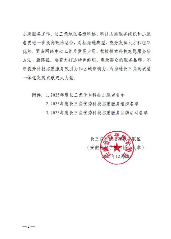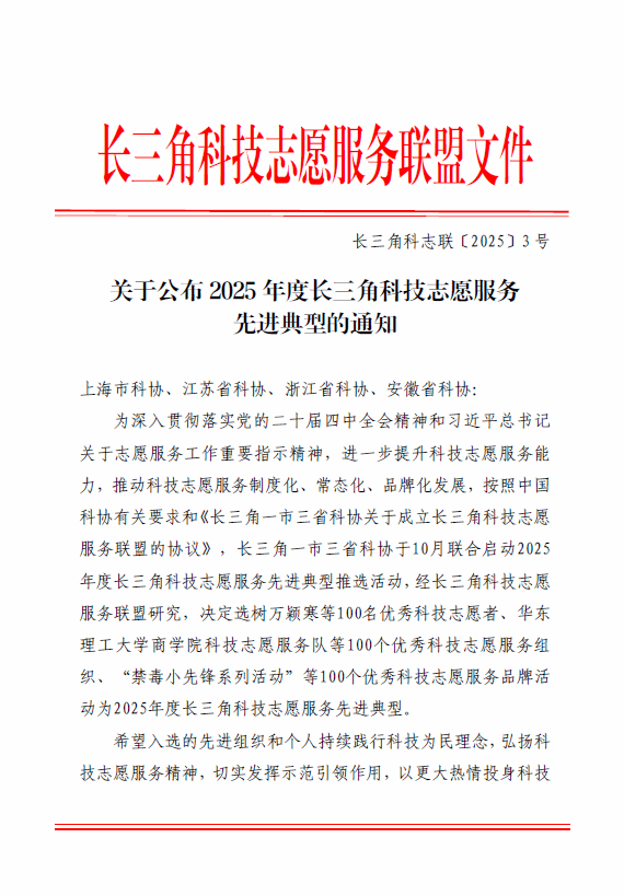 据悉,2025年度长三角科技志愿服务先进典型推选活动由长三角一市三省科协联合启动,经联盟研究审定,共选树 100 名优秀科技志愿者、100 个优秀科技志愿服务组织、100 个优秀科技志愿服务品牌活动,旨在推动科技志愿服务制度化、常态化、品牌化发展。