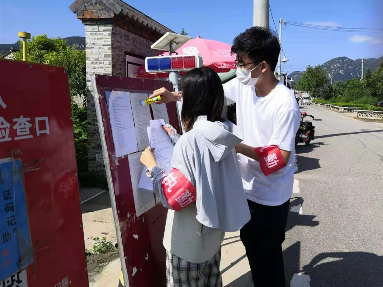 研究生们的第三个角色是疫情防控志愿者。研究生们积极参与当地疫情防控,在排查当地居民疫苗接种情况的同时,深入各村第一线检查村口卡口设施、张贴最新中高风险地区名单、记录外地归来人员和红黄码人员等工作,在各方的共同努力下,当地未出现新冠疫情感染病例,为当地居民生产生活提供了有力保障。