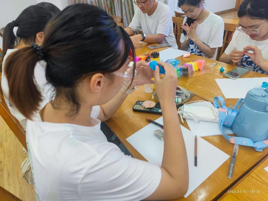 此外,受烙画可以展现江豚立体形象的启发,志愿者们也通过用黏土在纸上设计江豚形象,将江烙画的雕刻形式改为浮雕的形式,沿用烙画勾、勒、点、擦、白描等手法,多角度展现江豚形象。从一块未经雕琢过得木板到生动形象的江豚,志愿者们在一次次的尝试中体验非遗传承人的匠心坚守,在感受传承千年的文化记忆时坚定文化自信。面对热情学习烙画,努力创新的志愿者们,非遗传承人阙真金向众人吐露出他的心声:“我的徒弟谢志安在甘坐冷板凳的过程中绘画出栩栩如生的蜜蜂,在传承非遗文化的过程中宣传保护中国的五大蜜蜂,很期待佑见江豚团队可以传递火炬,更好地保护江豚。”
