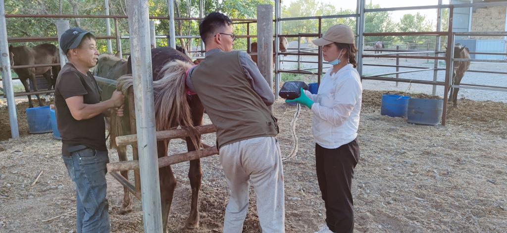 “伊”马当先团队开展马发情鉴定、人工授精、马牛羊等家畜常见疾病诊疗工作。累计测定了孕马及马驹血液生化指标、心率变异性、乳品质鉴定、胚胎及卵泡发育等数据8095条,鉴定马匹962匹次。同时,团队还帮助农牧民有效改善了马产业中的种源优化,解决了家畜看病难的问题。