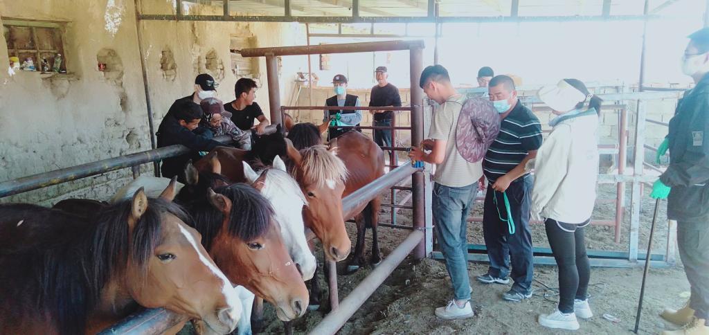 研究生志愿服务团队为马匹选种、育种