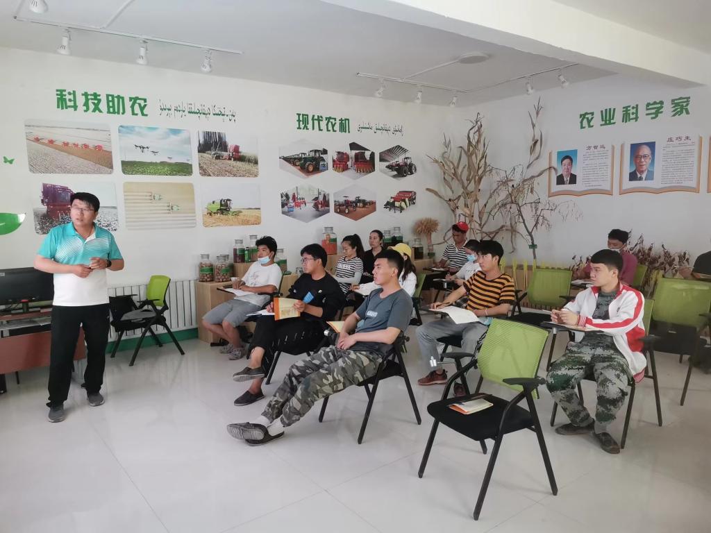 团队定期给农户棉花种植提供技术指导,通过无人机和大数据平台,时刻监测棉花生长状况,以确保棉花正常生长,监测到的问题会及时反馈给农户,并提出解决意见。此外,志愿者们在棉花地头开展田间小课堂,为农户讲解棉花病虫害防治、水肥管理及化控等方面的知识。为扩大宣传力度,把这些知识传授给更多的棉农们,同学们利用新媒体技术,自拍自导制作了几期微视频。