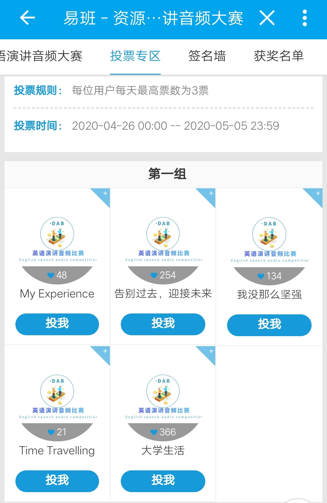 为进一步加强学生的英语口语表达能力,资源与环境学院DAB英语协会于4月26日至5月5日举办英语演讲音频比赛。比赛面向学院全体学生展开。