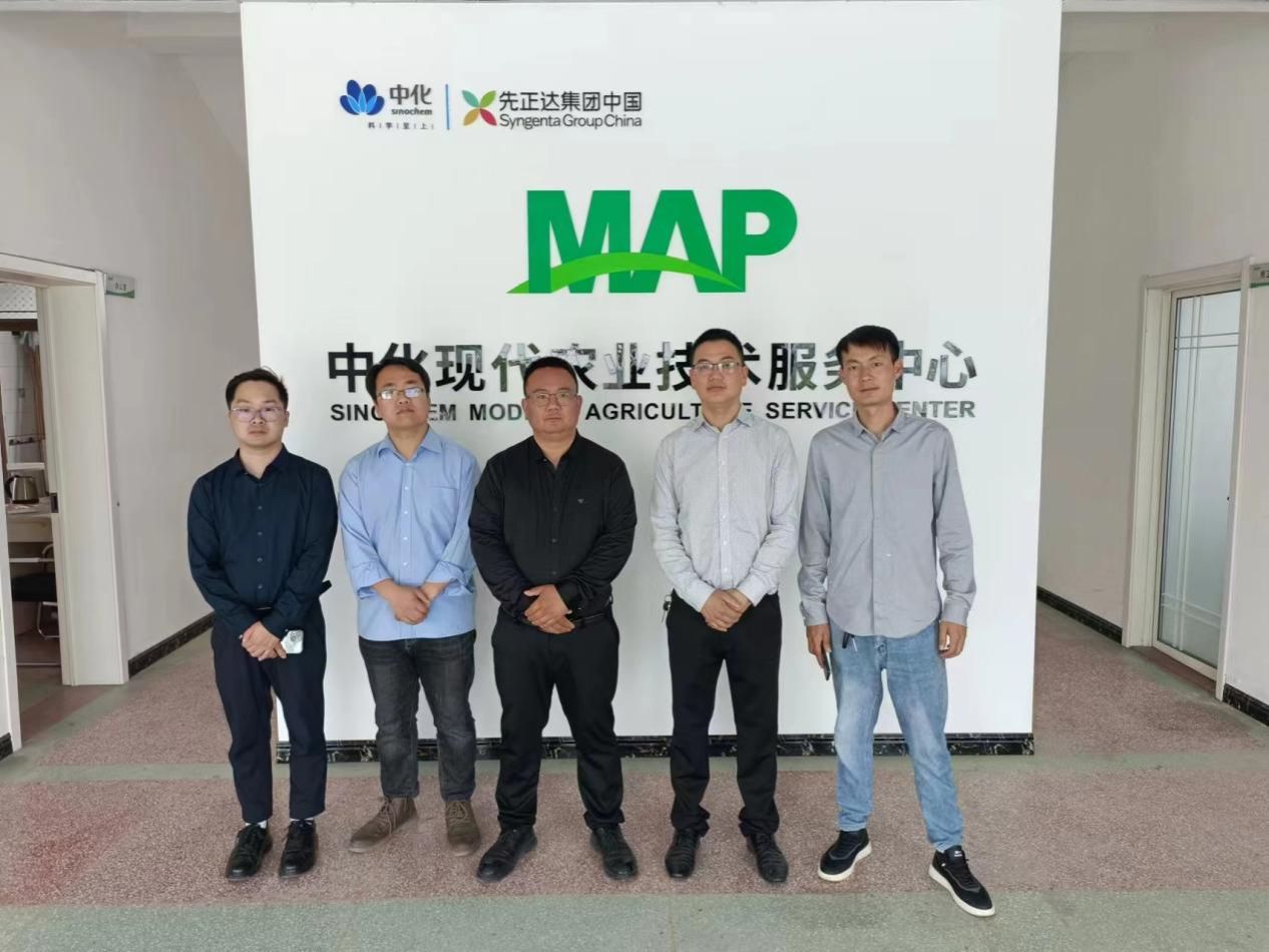 李飞跃一行在刘瑞经理的陪同下,参观了中化现代农业安徽有限公司的中化现代农业技术服务中心,中心通过统一土地组织-统一金融保险-统一机械作业-统一技术方案-统一烘干收储-同一品牌打造的“六统一模式”创新了农业服务新模式,有效带动了当地农业产业发展,助力乡村振兴。交流中双方表达了开展产学研合作意愿。
