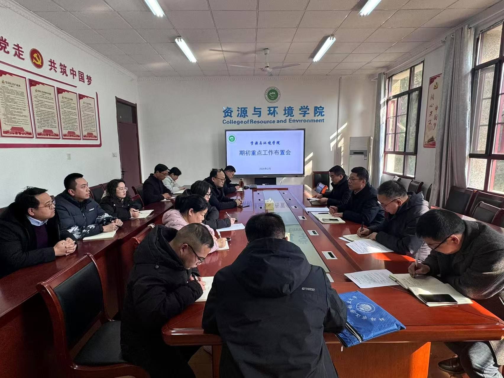 2月19日下午,资源与环境学院于学院会议室召开期初重点工作布置会,全面部署新学期各项重点工作任务,确保全年工作开好局、起好步。学院党政领导、各系主任、实验室主任、党支部书记参加会议。会议由学院党委书记沈树周主持。