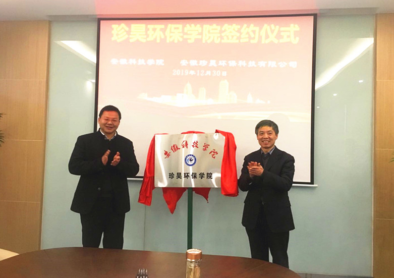 为推进一流应用型大学建设,探索校企合作新模式,经校企协商,12月30日下午,乐鱼平台_乐鱼(中国)一站式服务平台“珍昊环保学院”成立揭牌仪式在安徽珍昊环保科技有限公司举行。校党委书记蒋德勤出席仪式并讲话。校教务处处长宋常春,资源与环境学院党总支书记李孟良、院长肖新、副院长李孝良、院长助理谢越、环境与科学工程系主任范行军、土壤与环境中心朱琳,安徽珍珠水泥集团股份有限公司董事长高峰、服务部部长王益春、办公室主任范志华及安徽珍昊环保科技有限公司总经理陈成侠等出席了活动。仪式由范志华主持。