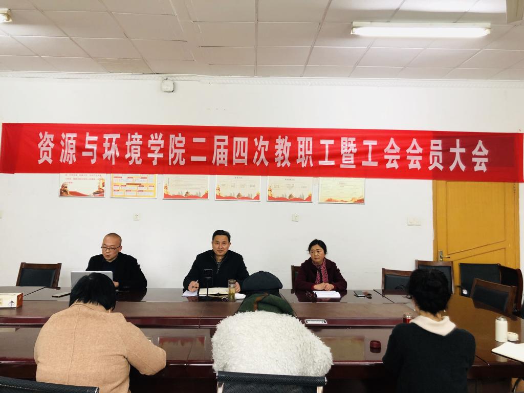 4月1日下午,资源与环境学院在学院会议室召开二届四次教职工暨工会会员大会。学院党政领导班子、全体教职工参加会议,会议采取线上线下结合的方式进行。大会由学院党总支书记李孟良主持。