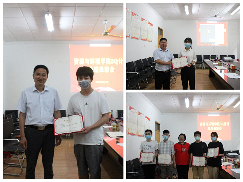 为进一步提高学生们的科研创新能力,大力提升应用型人才培养的质量,6月4日下午,资源与环境学院举行了3Q计划总结表彰大会暨2020级毕业生教育大会。学院党总支书记李孟良、副处级辅导员谢宜勤、院长助理谢越、团委副书记杨小晗出席本次会议,学院双创计划获奖同学、各班班长、团支书、学习委员及参加双创大赛项目的同学参加本次会议。会议由谢宜勤主持。