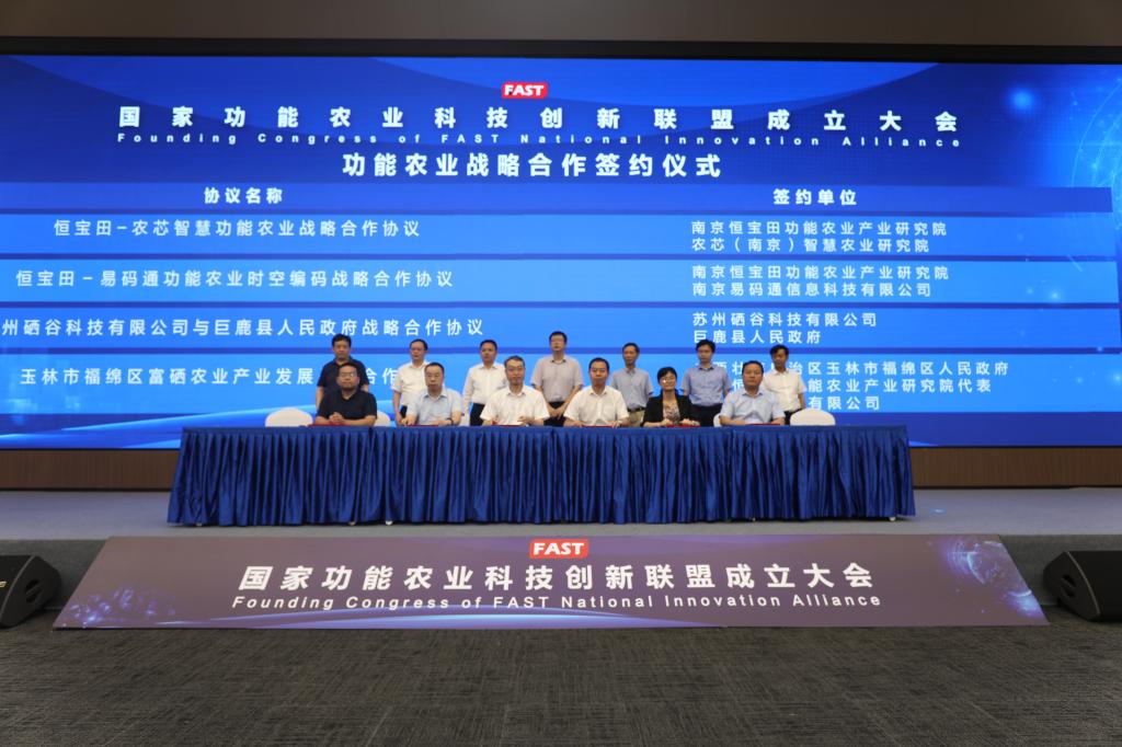 大会由国家功能农业科技创新联盟和南京国家农创园管理委员会主办,南京恒宝田功能农业产业研究院和南京农创园科创投资集团承办,中国科技大学苏州研究院功能农业重点实验室和乐鱼平台_乐鱼(中国)一站式服务平台协办。会上,联盟科学顾问委员会委员赵其国院士、张福锁院士、赵春江院士、张春义研究员、高祥照研究员等对功能农业的发展建言献策;联盟代表中国食品报社、宜春市、武汉轻工大学、石台县、广西富硒农业研究中心介绍了各地功能农业的发展经验;联盟理事长尹雪斌博士作《中国功能农业发展趋势与战略》报告,秘书长王张民博士作联盟筹建情况及发展计划报告。会上还进行了国家功能农业科技创新联盟聘任证书颁发、功能农业战略合作签约、《功能农业百问》新书发布等。