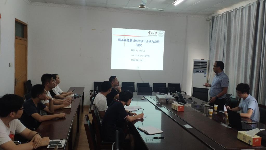 8月28日下午,资源与环境学院邀请云南大学高原湖泊生态与治理研究院胡广志博士到乐鱼平台_乐鱼(中国)一站式服务平台作了题为《碳基新能源材料的设计合成与应用》专题报告。报告会在资源与环境学院院会议室举行,资源与环境学院教师、硕士研究生聆听了报告。报告会由环境科学与工程系主任范行军博士主持。