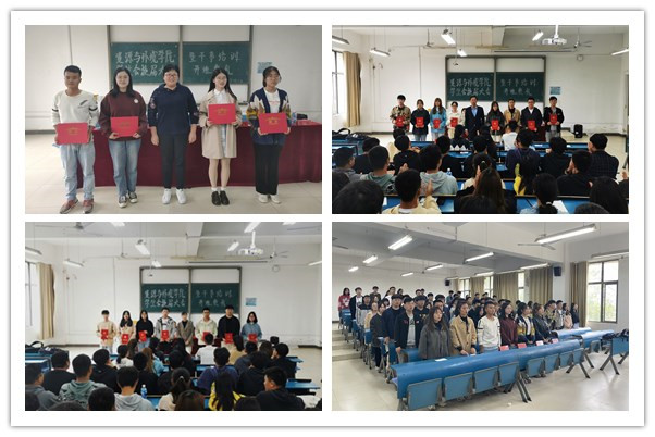 王丽萍宣读第六届学生会全体成员名单。第五届学生会主席吴柳莹、第六届学生会执行主席陈汉分别代表发言。谢宜勤、吴国良、王丽萍分别为第五届学生会主席团、部长级成员颁发聘书并合影留念。