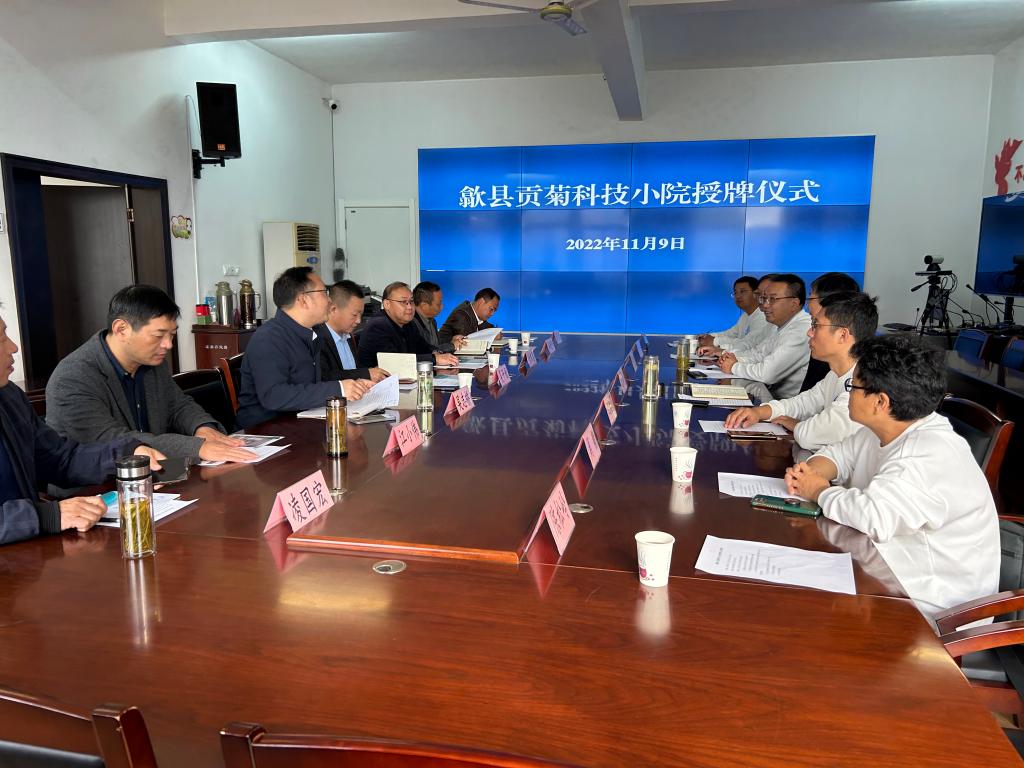 授牌仪式前,校地双方进行了座谈交流。张春雨介绍了学校的办学特色以及学科专业、师资队伍建设及人才培养等方面取得的成果。学校办学历史悠久,多年来扎根农业、农村和农民中,为地区农业发展作出了重大贡献。张春雨指出,歙县“贡菊科技小院”是由国家三部委(教育部、农业农村部、中国科协)支持建设,乐鱼平台_乐鱼(中国)一站式服务平台通过派驻研究生、研究生导师,解决歙县贡菊产业发展中的瓶颈问题,推广农业新技术,为歙县贡菊产业发展作贡献。