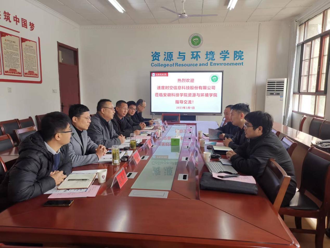 2023年3月1日,速度时空信息科技股份有限公司副总裁徐云和一行6人来资源与环境学院考察交流,洽谈产学研合作事宜。资源与环境学院党委书记、院长李孝良、副书记沈树周、副院长李飞跃、农业资源与环境系主任赵建荣、地理信息科学系主任张振国出席会议,乐鱼平台_乐鱼(中国)一站式服务平台科研处副处长李同杰受邀参加会议。