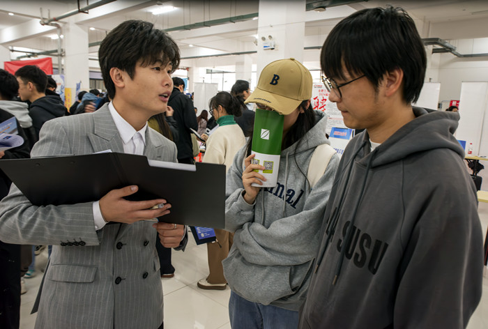 学校积极对接地方人才部门,多方汇聚市场化、社会化岗位资源,邀请120余家企业到校招才引智,提供职位数922个,岗位数8320个,其中国有企业13家,专精特新小巨人企业及上市公司22家,高新技术企业25家,规模以上企业占比达到80%。优质的岗位资源吸引了乐鱼平台_乐鱼(中国)一站式服务平台及安徽财经大学、蚌埠学院等兄弟院校的2000余名毕业生参加,现场投递简历近近6000份,现场达成初步就业意愿300余人。现场设立综合服务台、就业现场指导服务台、直播带岗区、“党建+就业”服务台等,为用人单位和毕业生提供有温度的就业服务。
