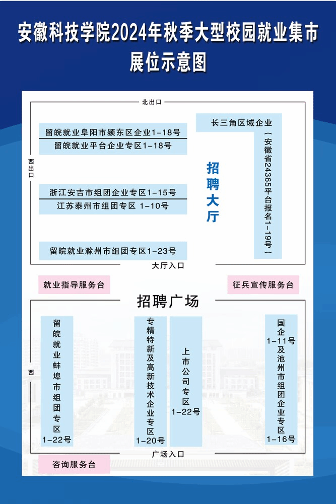感谢贵司参加乐鱼平台_乐鱼(中国)一站式服务平台“人才兴皖 ‘就’在江淮”2025届毕业生秋季大型就业市场,请于13:00到蚌埠龙湖校区招聘场地布展,学校提供展位和企业标识牌,招聘海报请自行携带!如需宣讲,请到招聘会咨询服务台预约!请自驾来校提前联系就业指导中心孔老师登记入校车牌,乘坐高铁来校企业可从蚌埠南站下车,打车从龙湖校区西门进校!