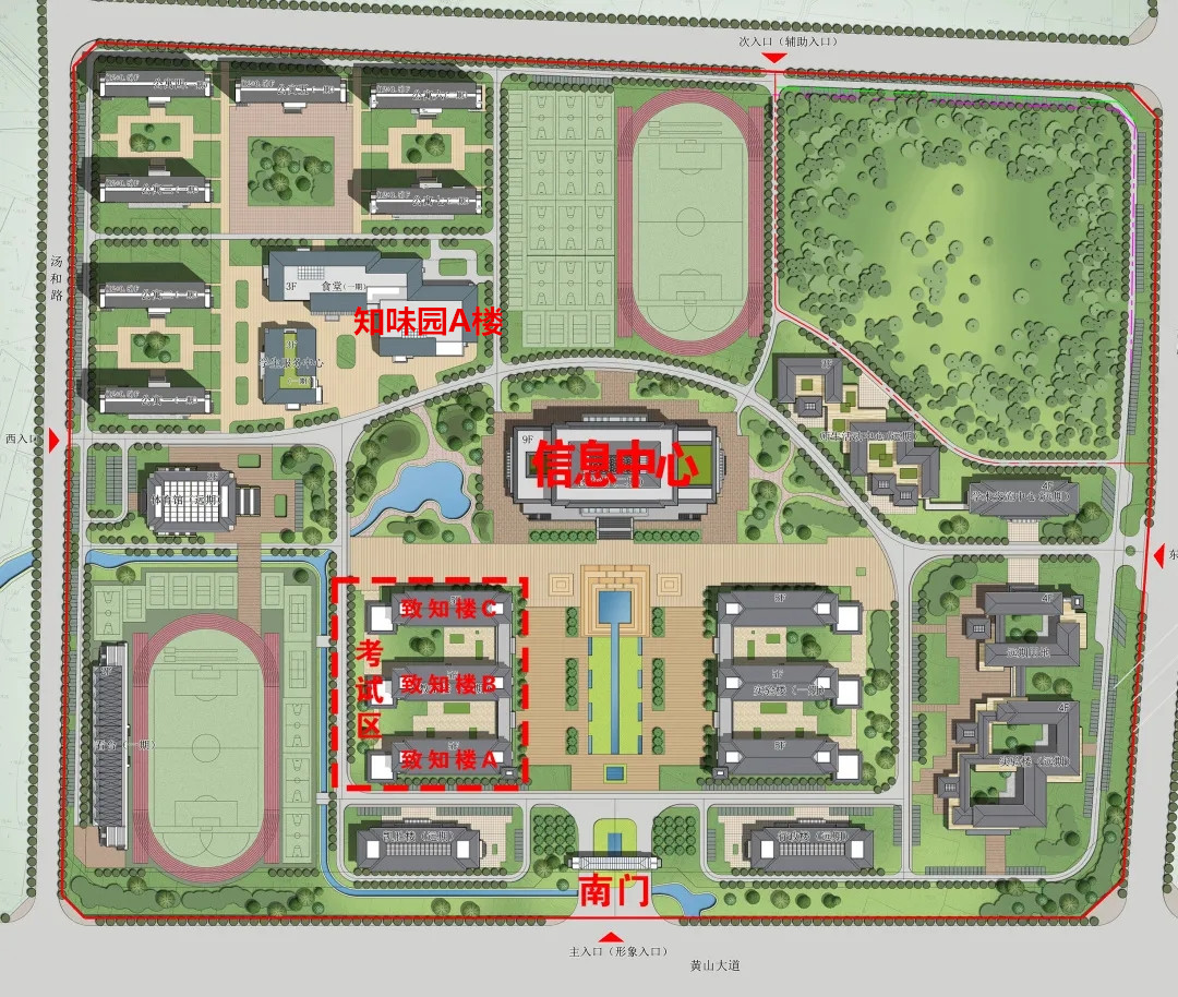 3.考生4月18日上午8:00(下午13:00)后方可从龙湖校区南门进入校区,考试开始前30分钟可以进入考场,考场安排在龙湖校区致知楼A、B、C楼,详见下方示意图。