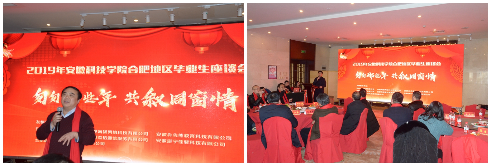 本次座谈会以“匆匆那些年,共叙同窗情”为主题,旨在共同追忆大学时光,关注和支持母校发展,促进合肥地区毕业生之间相互交流。座谈会由安徽合达科技有限公司总经理、2000级生物教育专业郭凯发起,合肥海拔网络科技有限公司、合肥星安商贸有限公司、安徽杰拓通信服务有限公司、安徽犇犇熊教育科技有限公司、安徽康宁佳馨科技有限公司、合肥诺为尔基因科技服务有限公司等七家校友企业联袂赞助。